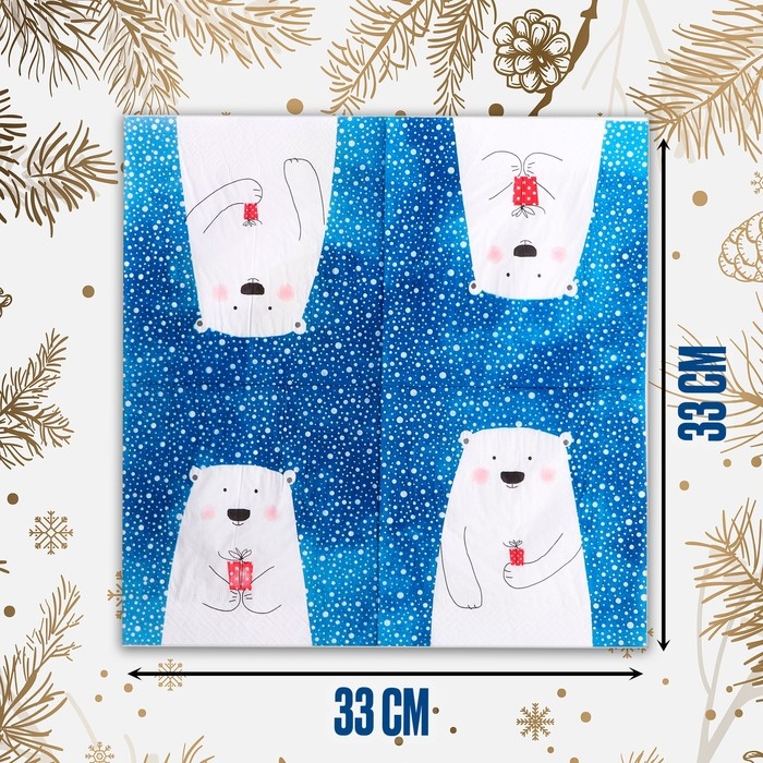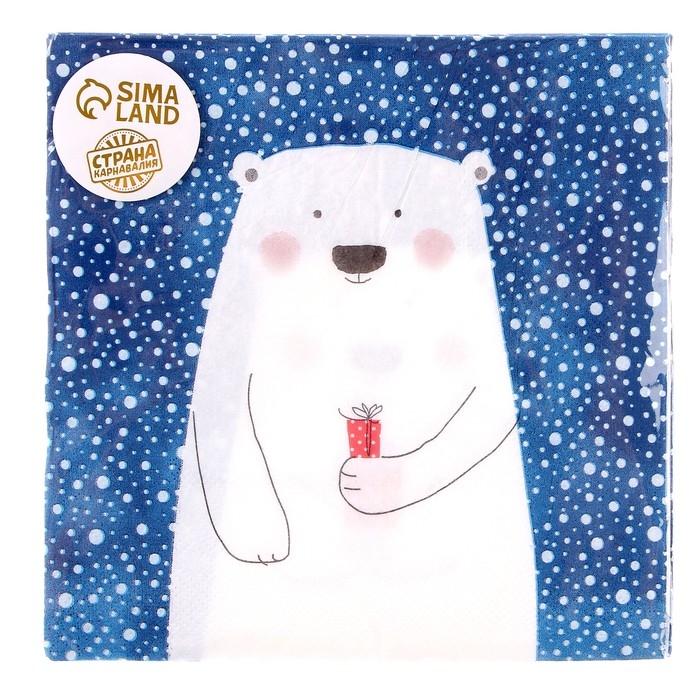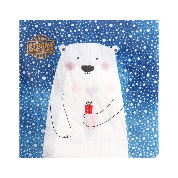 Салфетки бумажные «Белый мишка с подарком», 33х33 см, набор 20 шт.