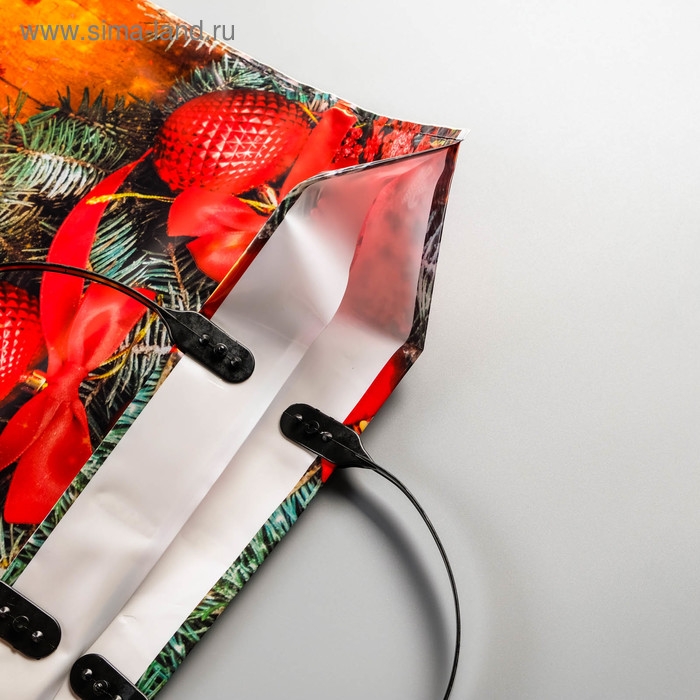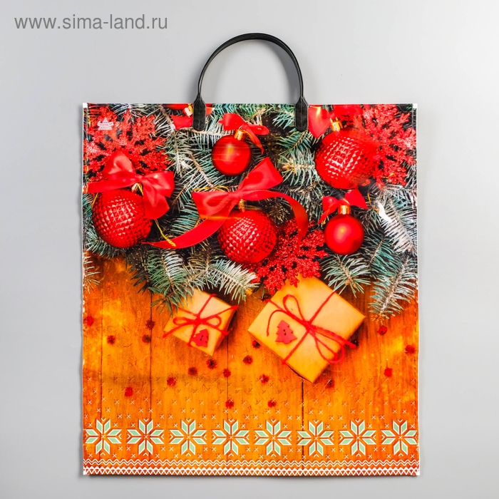 Новый год. Пакет "Шарики на деревянном", полиэтиленовый с пластиковой ручкой, 44 х 40 см.
