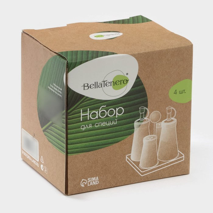 Набор для специй BellaTenero изготовлен из качественного фарфора. Кухонные изделия из фарфора отличаются прочностью и надёжностью, устойчивы к появлению царапин и резким перепадам температур. Благодаря оригинальному дизайну и причудливым формам набор отлично впишется в интерьер вашей кухни и станет настоящей изюминкой при сервировке.