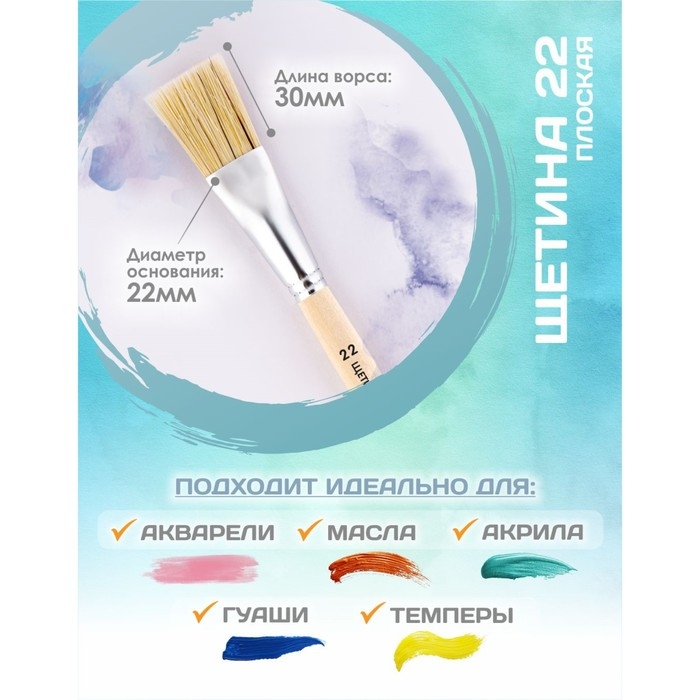 - Важным свойством является расщеплённый кончик, который способствует хорошей наполняемости кисти и ровному нанесению краски. Изделия предназначены для работ с "тяжёлыми красками": маслом, акрилом, темперой, гуашью. Натуральные кисти из щетины – отличный инструмент как для детского и школьного творчества, так для хобби и профессиональной живописи.