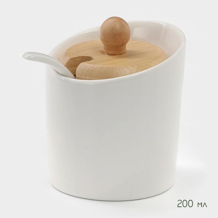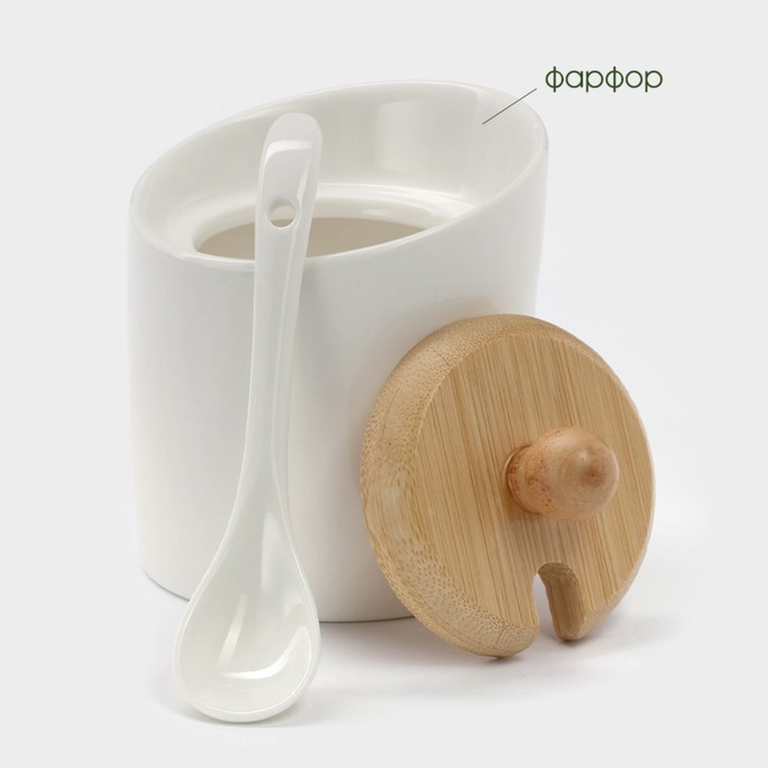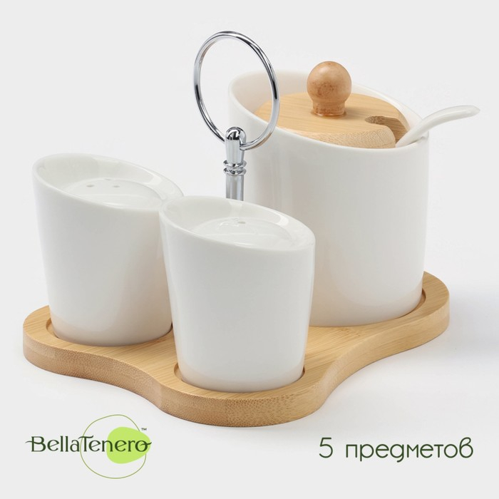 Набор фарфоровый для специй BellaTenero, 5 предметов: солонка 50 мл, перечница 50 мл, сахарница с ложкой 200 мл, подставка-держатель, цвет белый