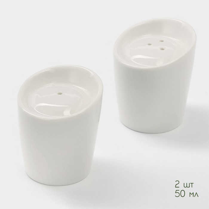 Набор фарфоровый для специй на бамбуковой подставке BellaTenero «Шарики», 2 предмета: солонка 100 мл, перечница 100 мл, цвет белый