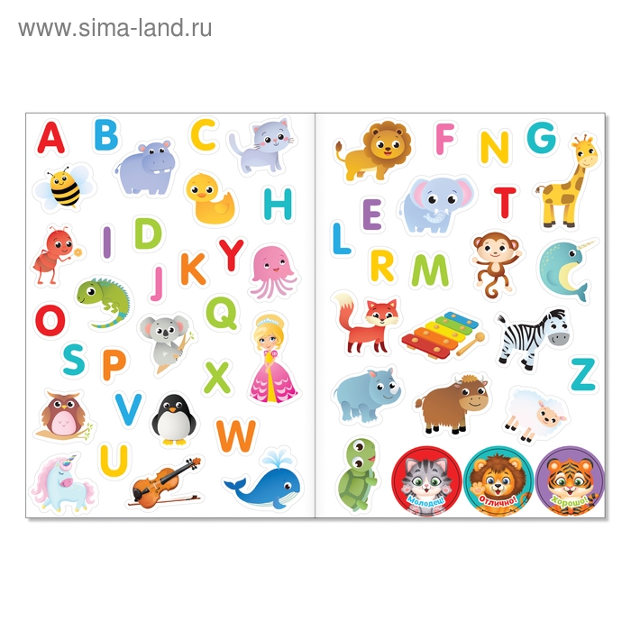 Набор книг с обучающими наклейками поможет детям в игровой форме запомнить английский алфавит, познакомиться с английскими словами и потренировать другие полезные навыки.