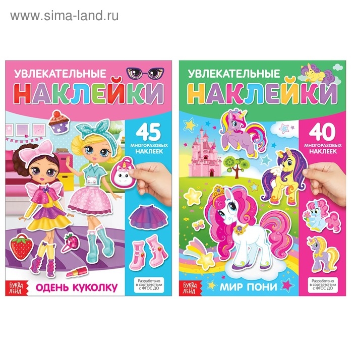 Набор многоразовых детских наклеек включает в себя 2 издания разной тематики: «Одень куколку» и «Мир пони». Превращайте обучение в увлекательную игру, меняйте наряды для куколок и заселяйте волшебный мир пони сказочными существами.