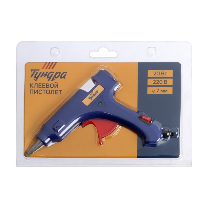 Клеевой пистолет ТУНДРА, 20 Вт, 220 В, шнур 1.2 м, выключатель, индикатор, антикапля, 7 мм