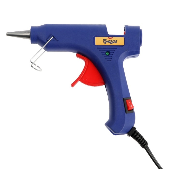 Клеевой пистолет ТУНДРА, 20 Вт, 220 В, выключатель, индикатор, длинное сопло, 7 мм