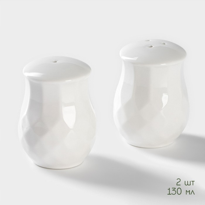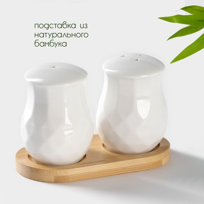 Набор фарфоровый для специй на бамбуковой подставке BellaTenero «Шарики», 2 предмета: солонка 100 мл, перечница 100 мл, цвет белый