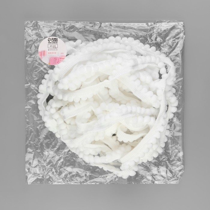 Тесьма декоративная с помпонами, 12 ± 2 мм, 9,1 ± 0,5 м, цвет белый