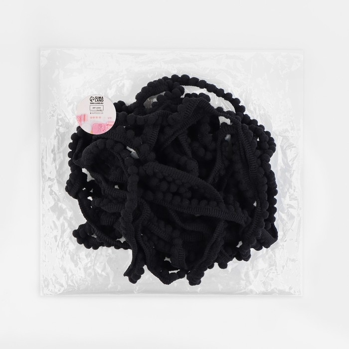 Тесьма декоративная с помпонами, 12 ± 2 мм, 9,1 ± 0,5 м, цвет чёрный
