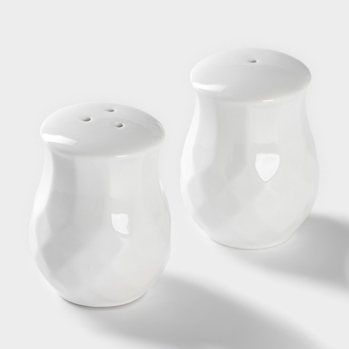 Набор фарфоровый для специй на бамбуковой подставке BellaTenero «Шарики», 2 предмета: солонка 100 мл, перечница 100 мл, цвет белый