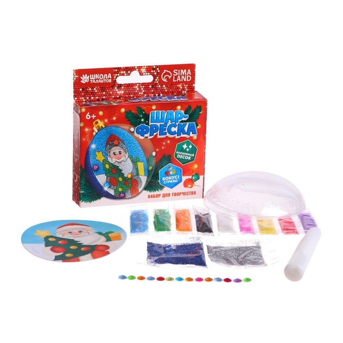 Ёлочный шар - фреска своими руками на новый год «Дед Мороз и ёлочка», новогодний набор для творчества