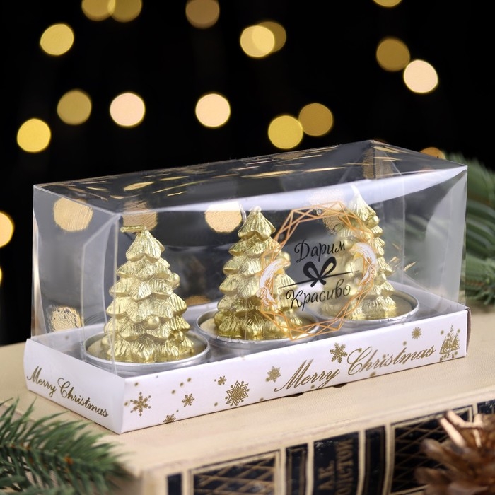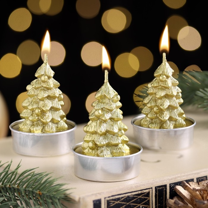 Набор свечи новогодние"Ёлка золотая", 4×6 см,