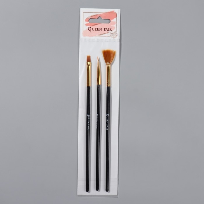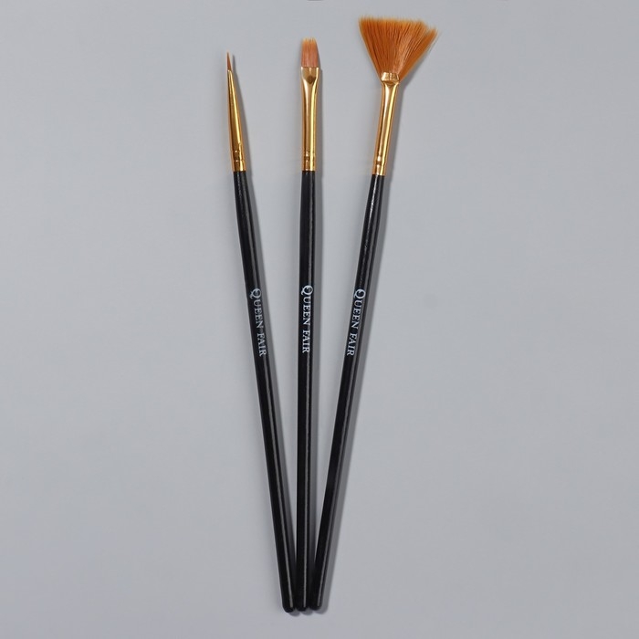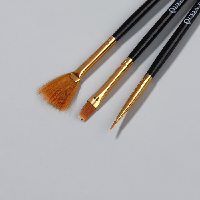 Набор кистей для наращивания и дизайна ногтей, 3 шт, 18,5 см, цвет чёрный/золотой