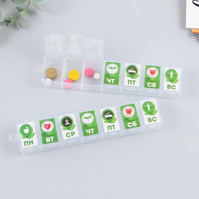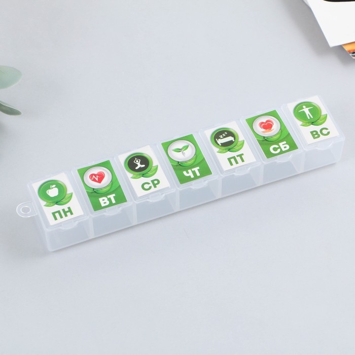 Таблетница «Неделя», 7 секций, русские буквы, 15,5 х 3,4 см.