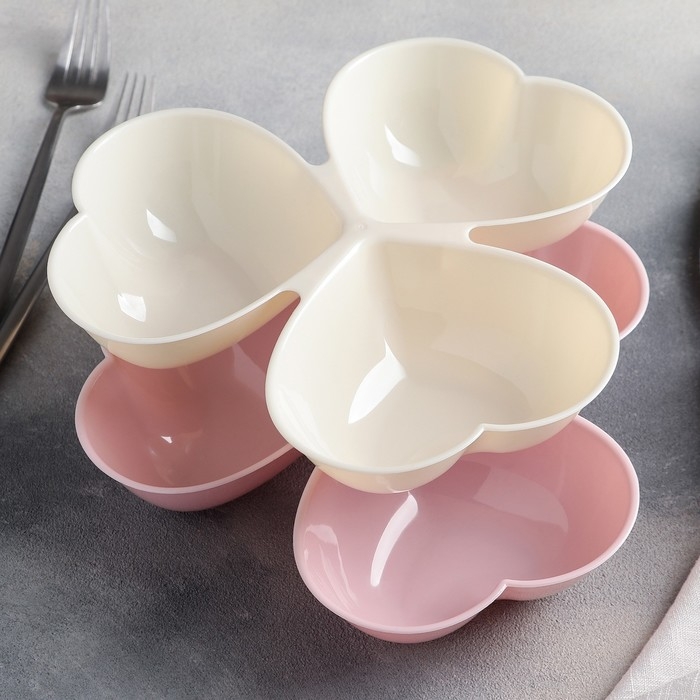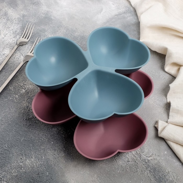 Менажница Доляна «Сердечки», 3 секции, 23×21,5 см, цвет МИКС