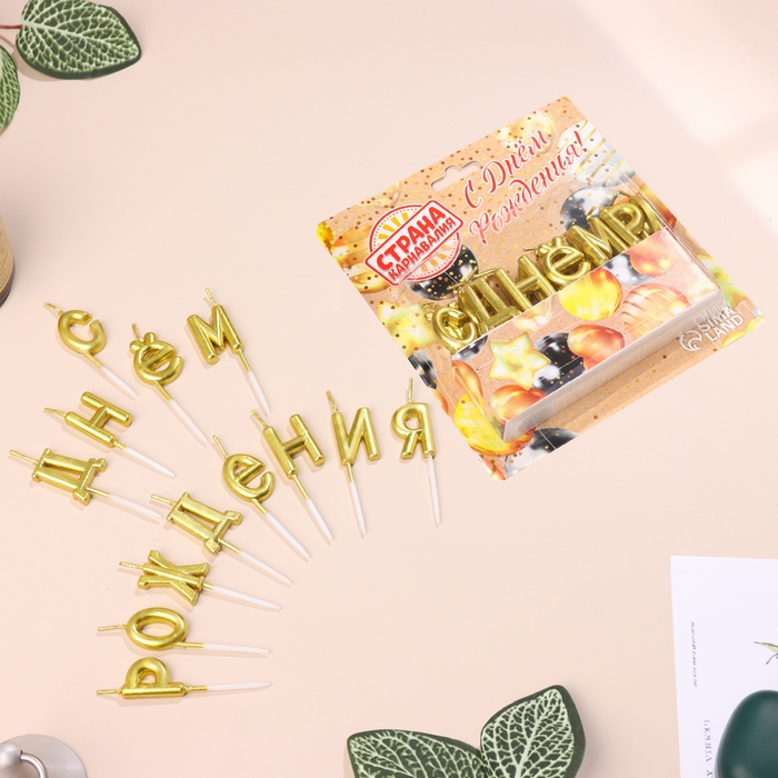 Свечи для торта "С Днём Рождения", золотые