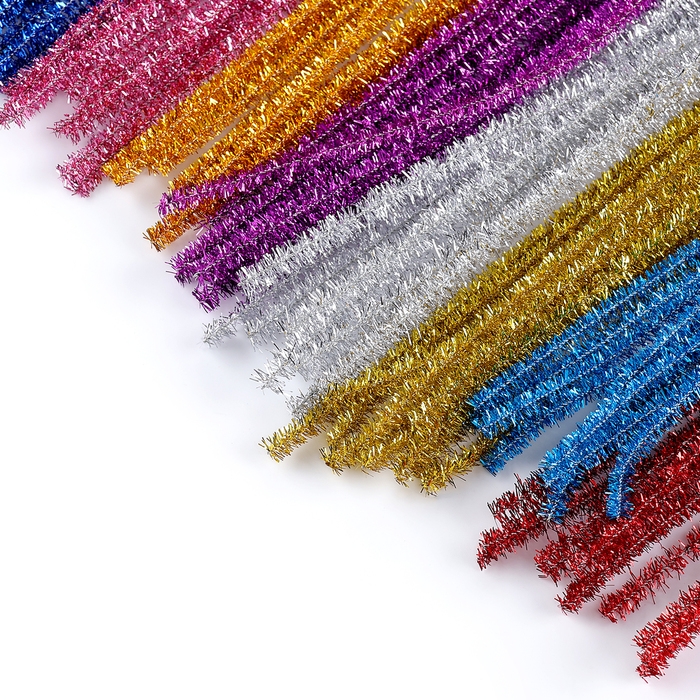 Проволока с ворсом для поделок и декорирования, набор 100 шт., цвета МИКС с блеском