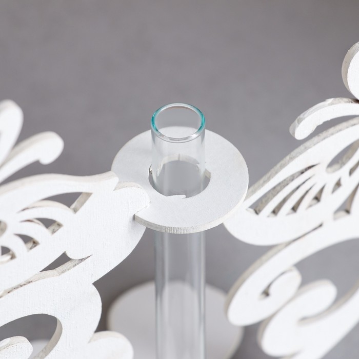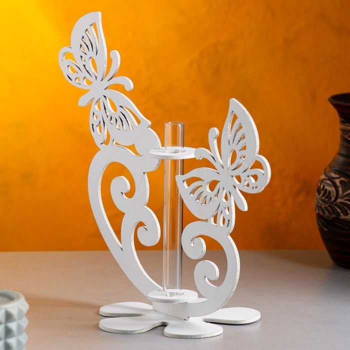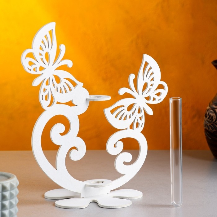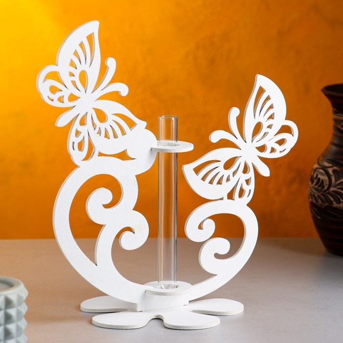Кашпо деревянное 13.5×13×26.5 см с 1 колбой "Бабочки", белый Дарим Красиво