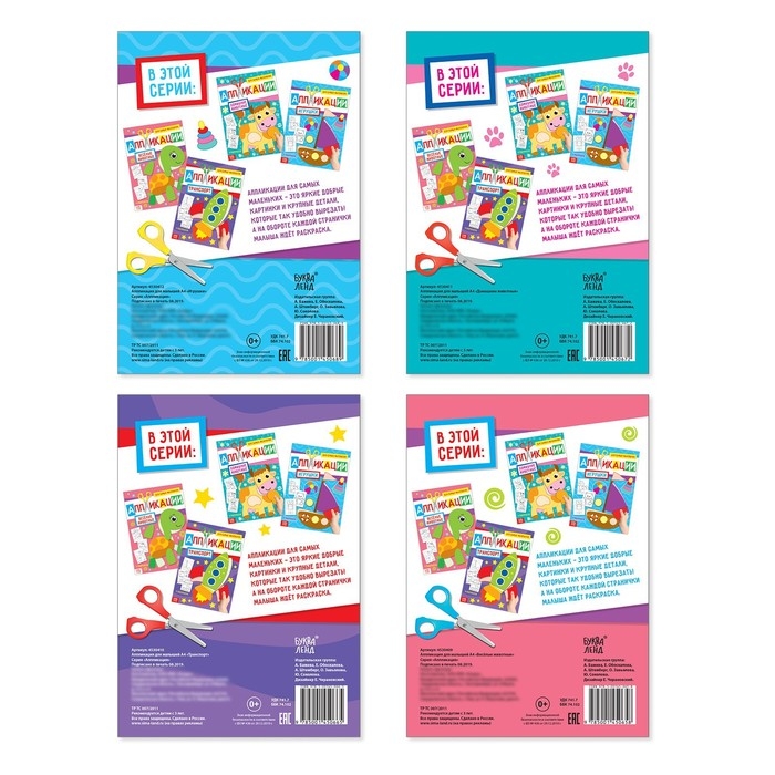 Книжки-аппликации предназначены для детей от 3 лет, рекомендуется использовать под присмотром взрослых.
