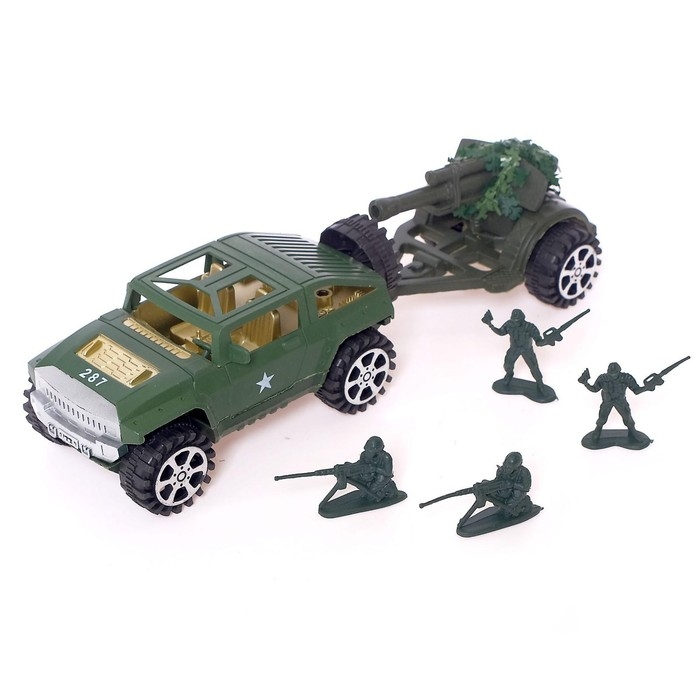Машина инерционная «Военный джип» с пушкой и солдатом