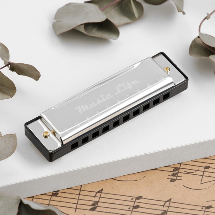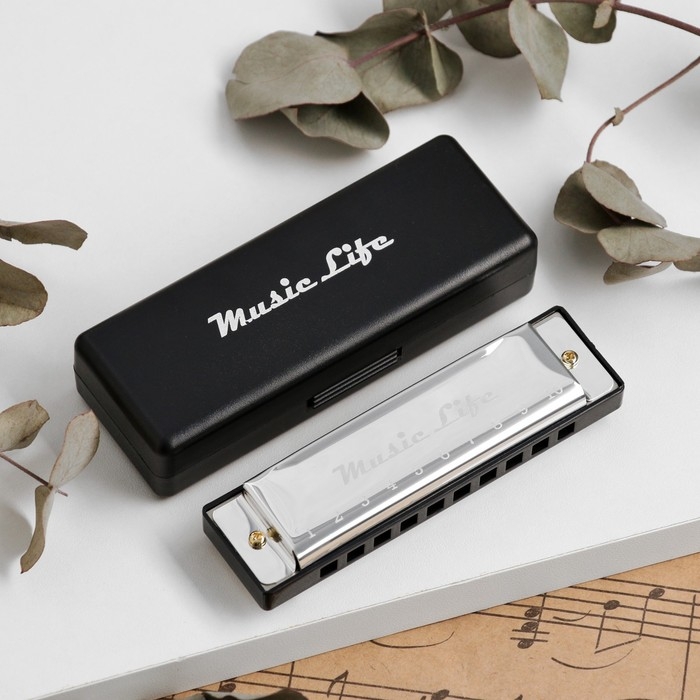 Губная гармошка Music Life, диатоническая, C-major, с футляром, серебристая