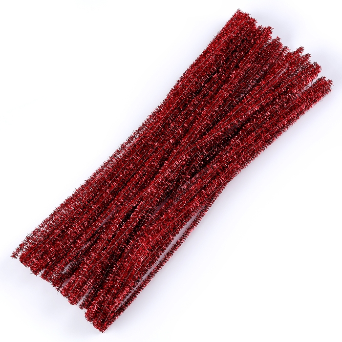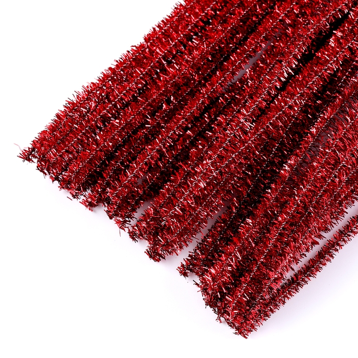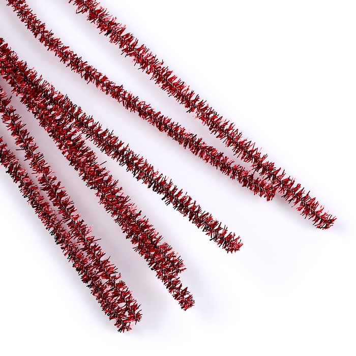 Проволока с ворсом для поделок «Блеск», набор 50 шт, размер 1 шт: 30×0,6 см, цвет красный