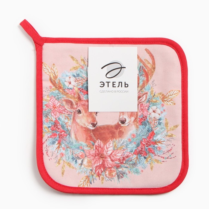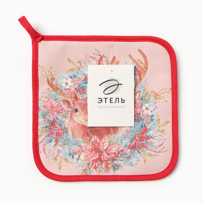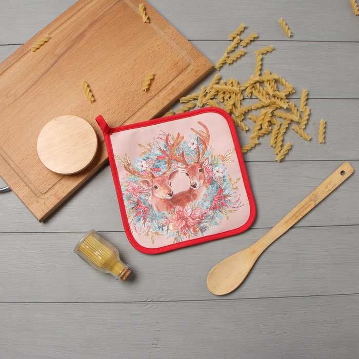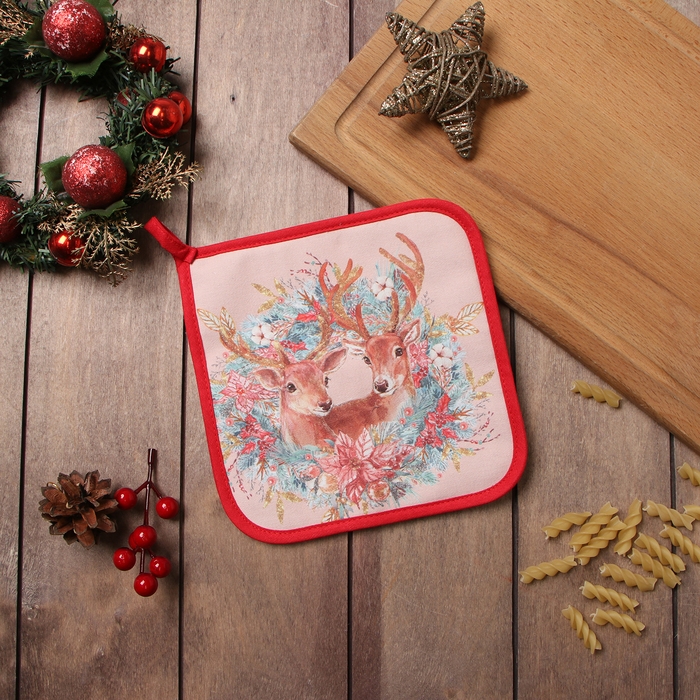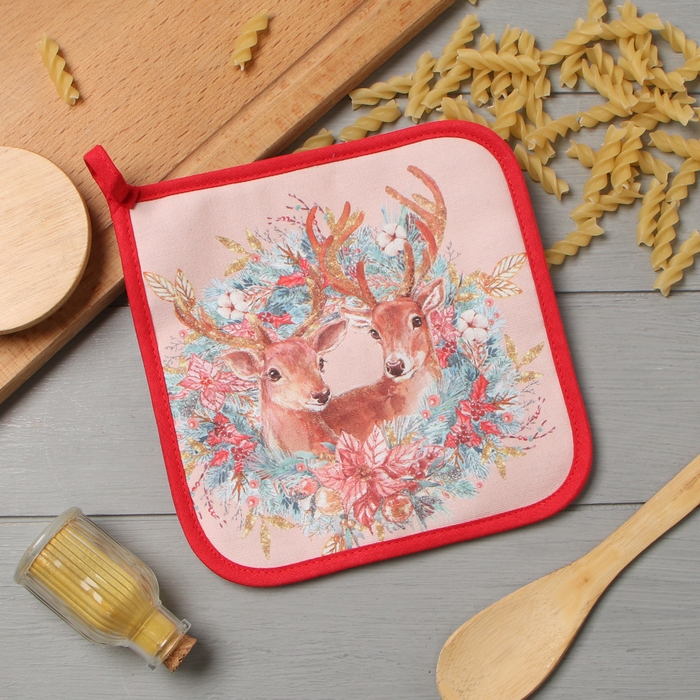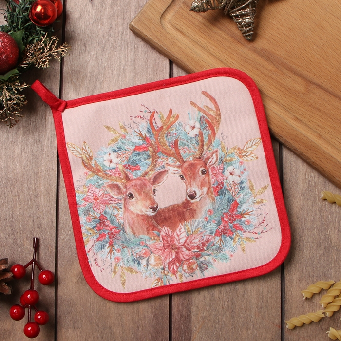 Прихватка "Сказочные олени" 19х19см,100% хлопок,ватин 250г/м2