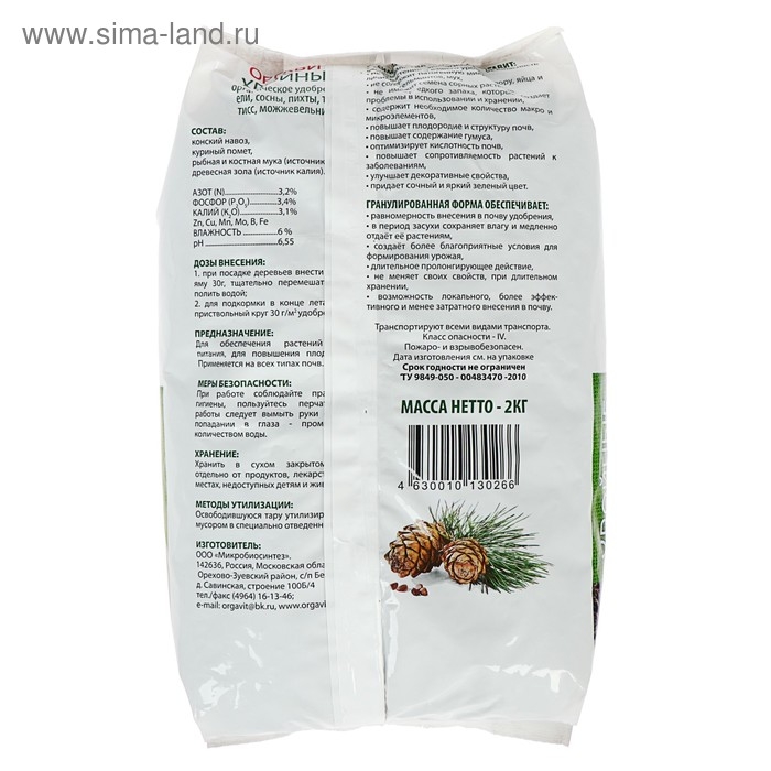 Удобрение гранулированное органическое Оргавит Хвойные, 2 кг