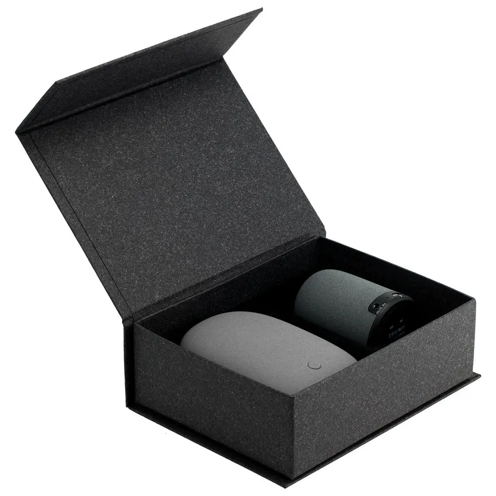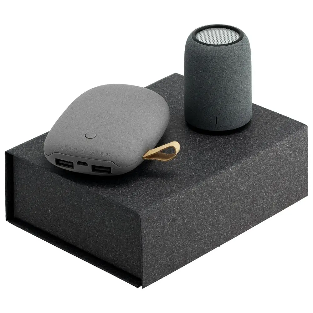 В набор входят аккумулятор Pebble и беспроводная колонка Grinder — незаменимые вещи для отдыха на свежем воздухе. Удобство управления и высокое качество сочетаются в наборе Palm Beach с лаконичным дизайном и шероховатой текстурой поверхности. Набор поставляется в черной коробке, идеально подходящей для нанесения логотипа.
