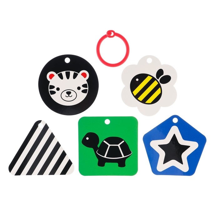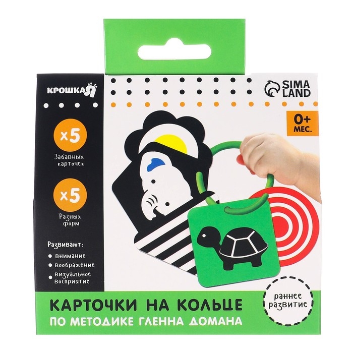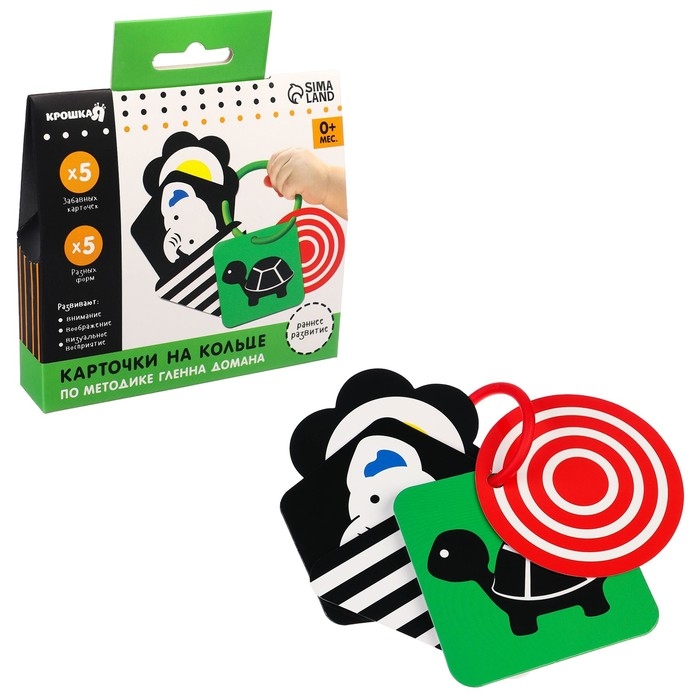 Развивающая игрушка по методике Г. Домана карточки на кольце «Зверята», 5 шт., Крошка Я