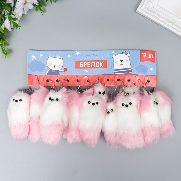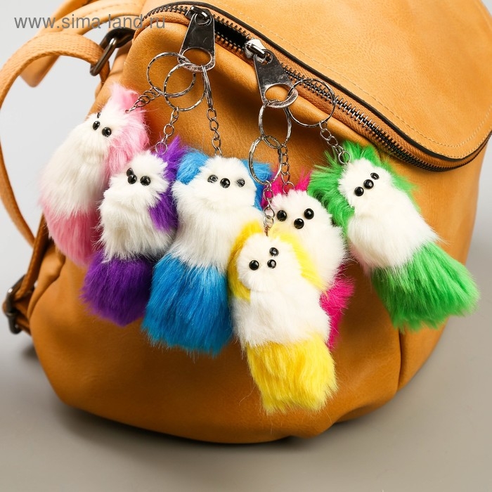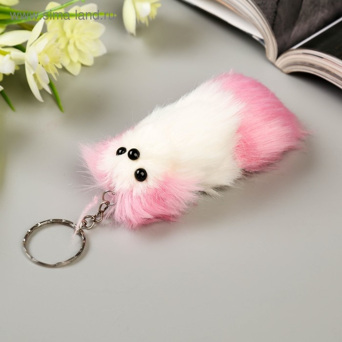 Пушистик на кольце с пищалкой "Пёсик с цветными ушками и хвостом" МИКС 10х4х4 см