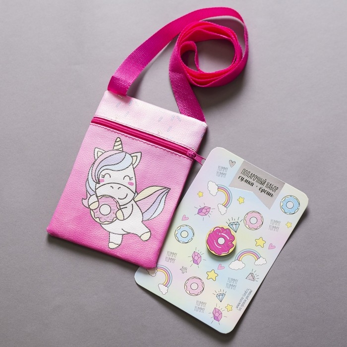 Подарочный набор для девочки «Единорожка», сумка,брошь, цвет розовый