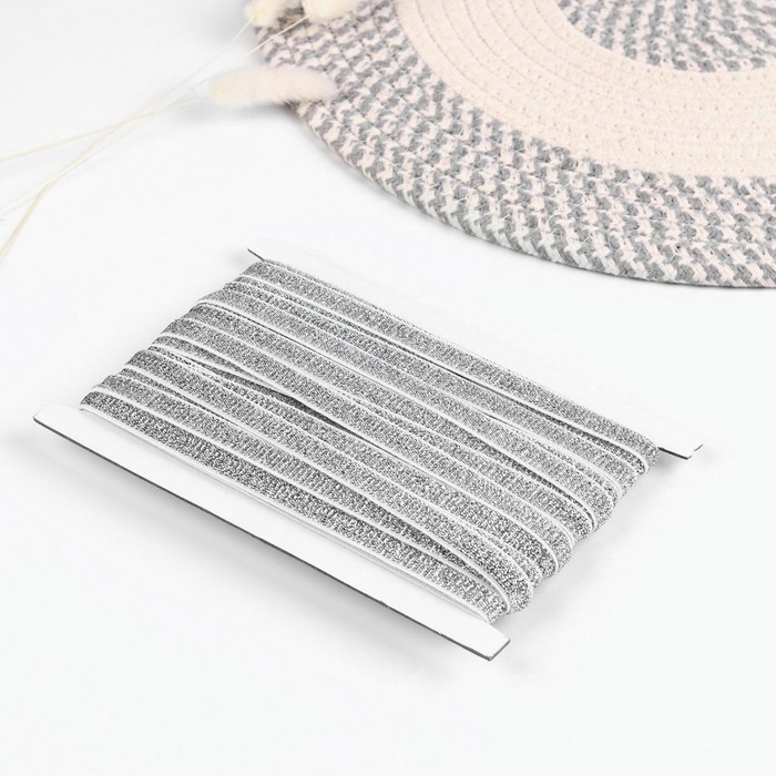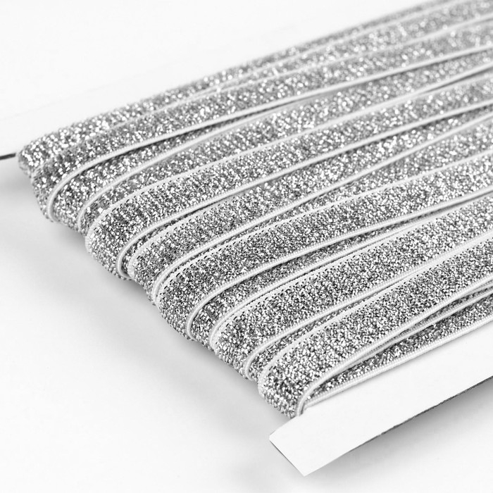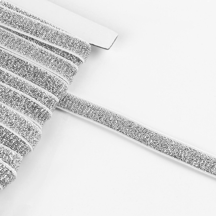 Резинка с глиттером, 10 мм, 10 ± 1 м, цвет белый/серебряный