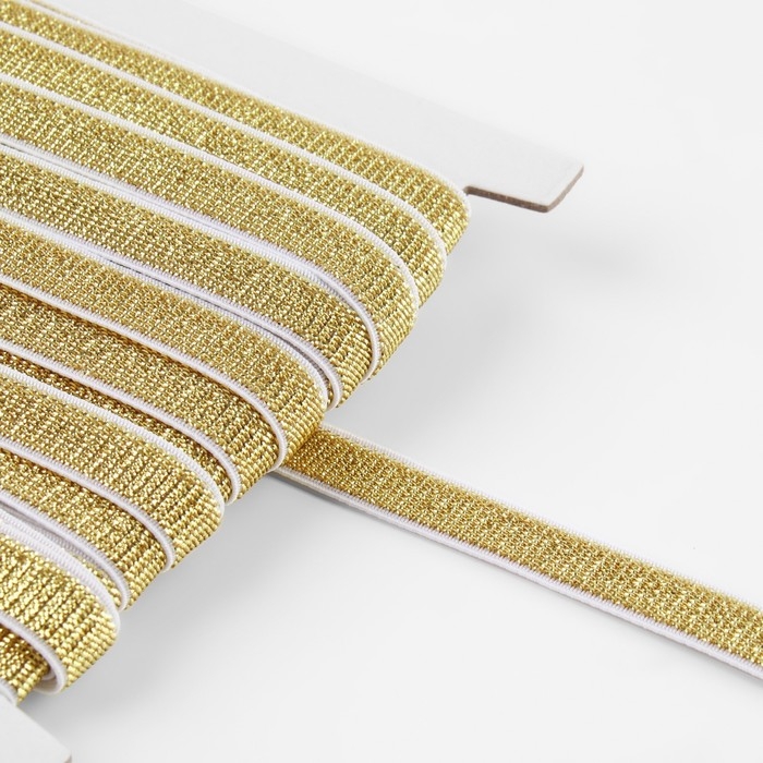 Резинка с глиттером, 10 мм, 10 ± 1 м, цвет белый/золотой