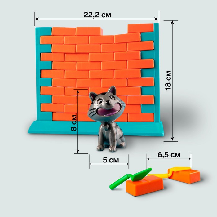 С настольной игрой «Спаси кота» ребёнок прокачает логическое мышление, мелкую моторику и координацию движений. Ведь вынуть кирпичики и не уронить при этом котика не так просто! Нужно тщательно продумывать каждое действие и аккуратно орудовать мастерком!