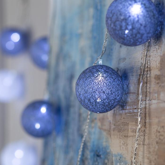 Светодиодная гирлянда с шариками из ниток станет прекрасным решением для создания праздничной атмосферы и уюта в интерьере. Она украсит карниз в спальне, стены в детской, фотозону или даже офисное помещение. Также гирлянда может служить отличным ночником для вашего малыша, а в спальне добавит интерьеру нежных красок и мягкий свет.