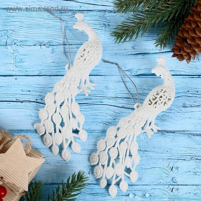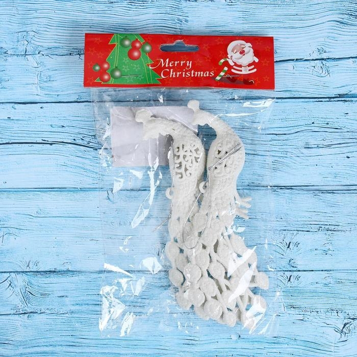 Украшение ёлочное "Павлин" (набор 2 шт) 5,5х16 см, белый