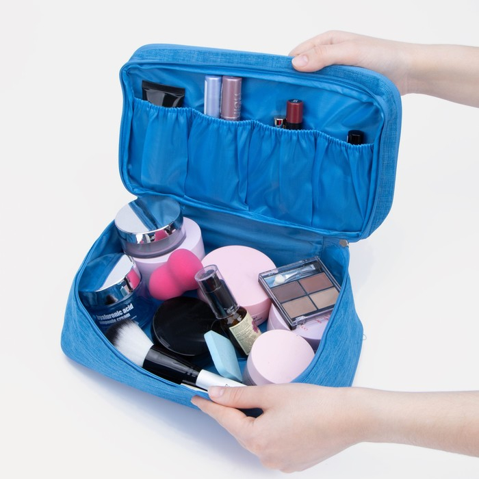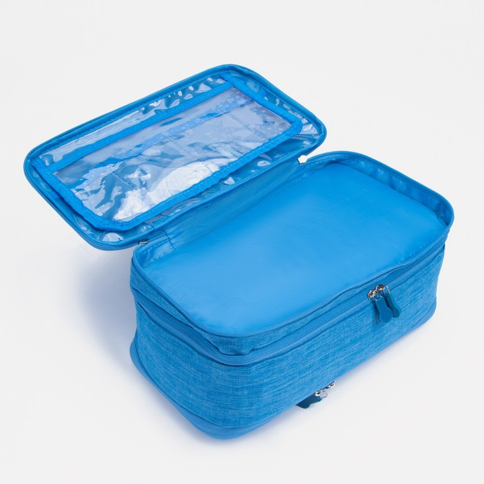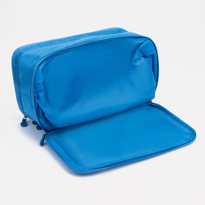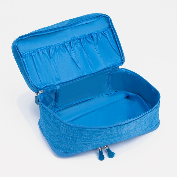 Косметичка, 3 отдела на молниях, цвет ярко синий