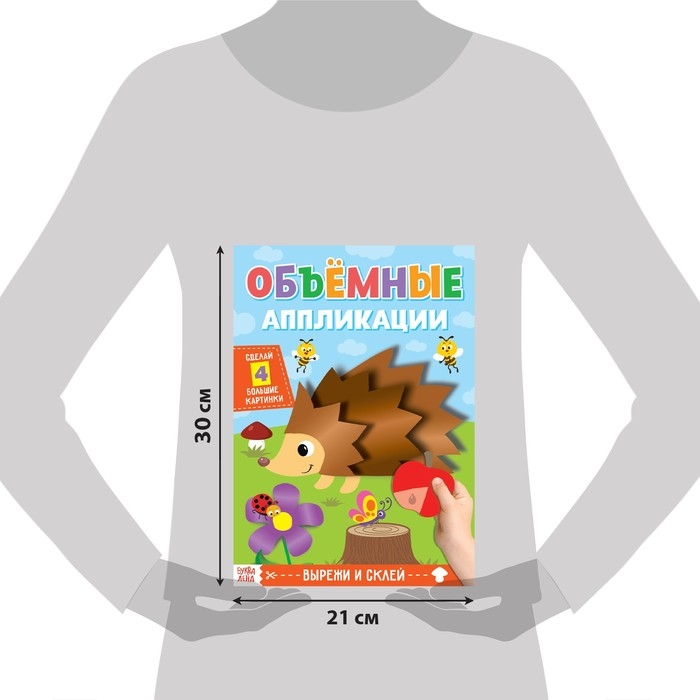 Аппликации объёмные «Ёжик» — 20 страниц удовольствия для вашего ребёнка и 4 поделки, собранные своими руками. Любимые зверушки, птички, ягоды и фрукты — всё это вы встретите на просторах книги!