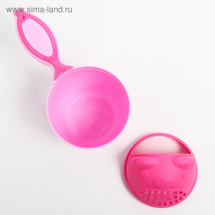 Ковш пластиковый для купания и мытья головы, детский банный ковшик «Мишка», 600 мл., с леечкой, цвет розовый