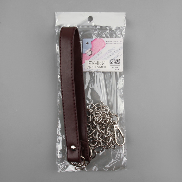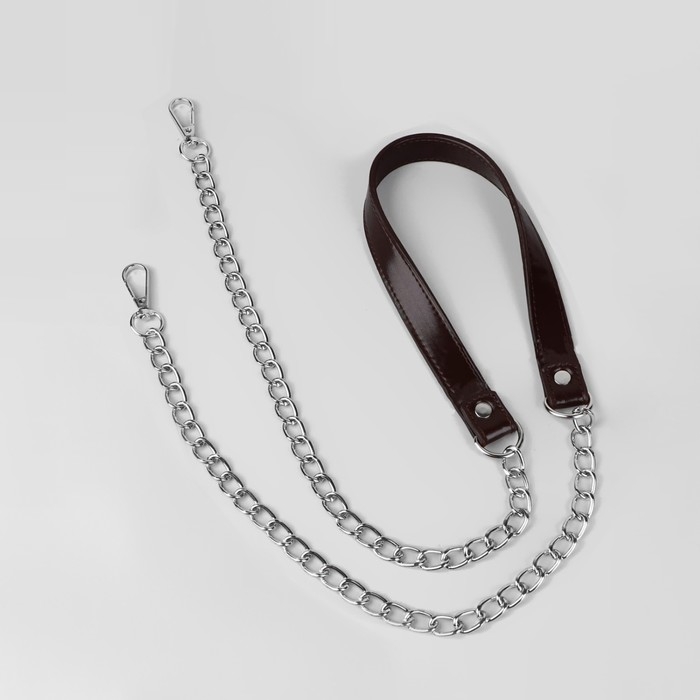 Ручка для сумки, с цепочками и карабинами, 120 × 1,8 см, цвет коричневый