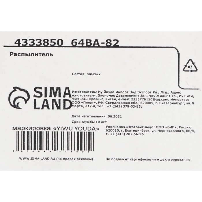 Распылитель подвижный "Раковина с жемчужиной" с поднимающейся крышкой