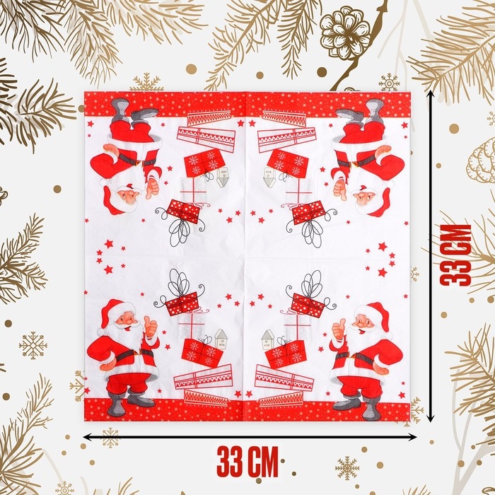 Салфетки бумажные «Дед Мороз и подарки», 33х33 см, набор 20 шт.
