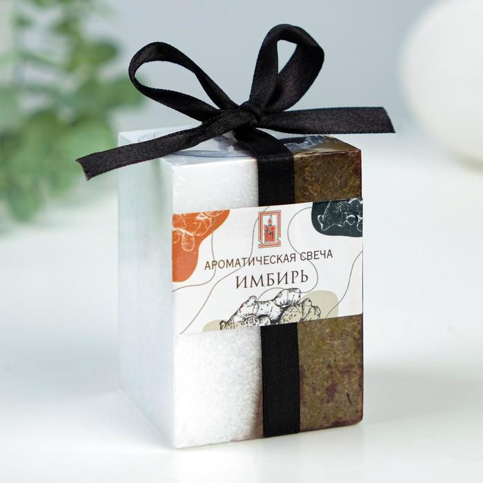 Свеча куб 5х7,5см, "Кристаллический узор", имбирь