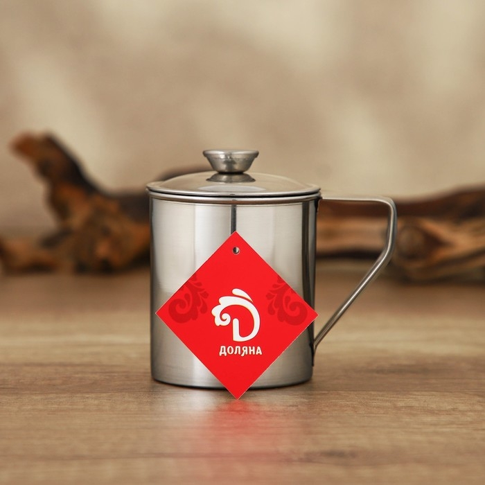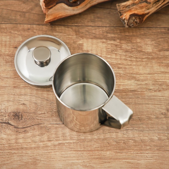 Кружка из нержавеющей стали Доляна «Индия» «Тарун», 300 мл, 11×7,7×10 см, с крышкой