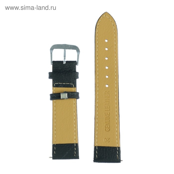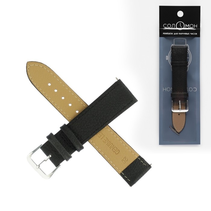 Ремешок для часов "Соломон", 20 мм, натуральная кожа, l-20 см, черный с тиснением