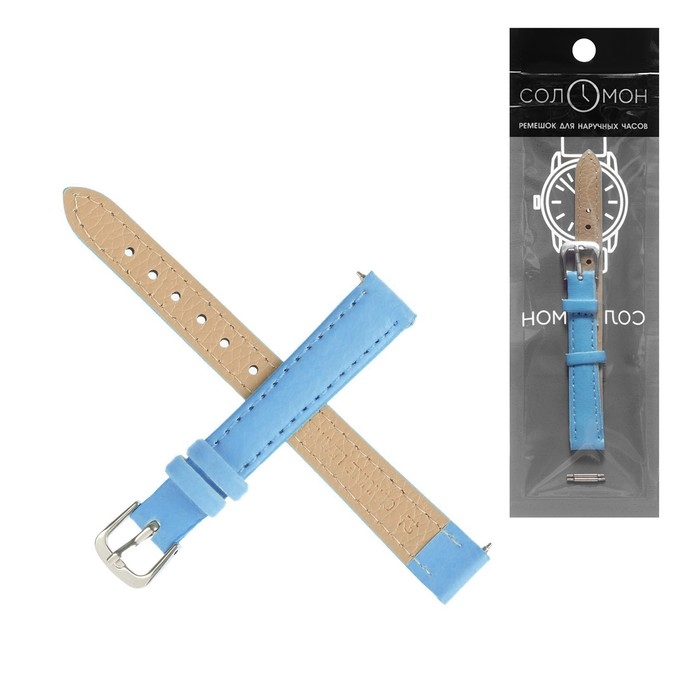 Ремешок для часов "Соломон", 12 мм, натуральная кожа, l-20 см, голубой