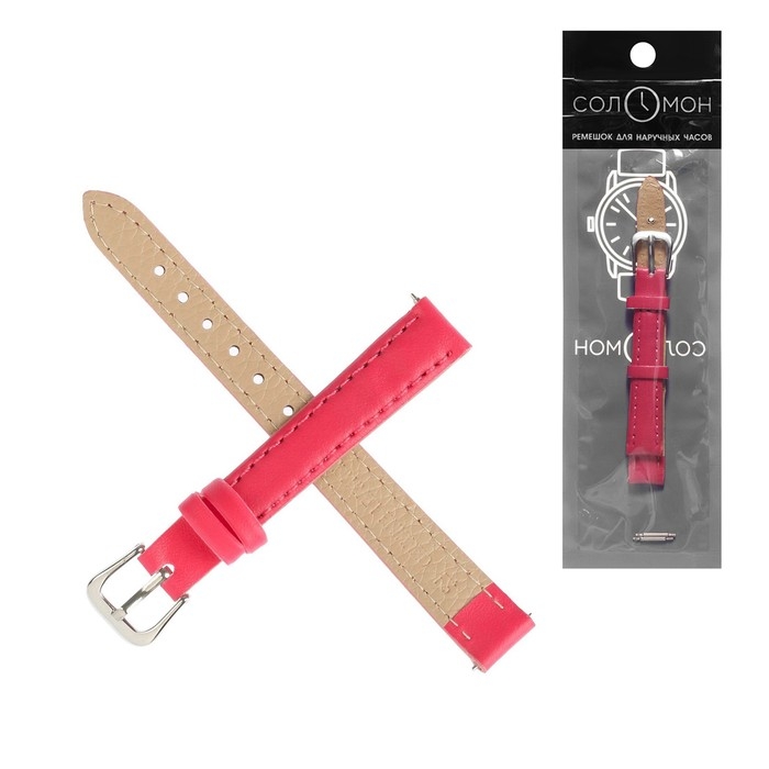 Ремешок для часов "Соломон", 12 мм, натуральная кожа, l-20 см, розовый