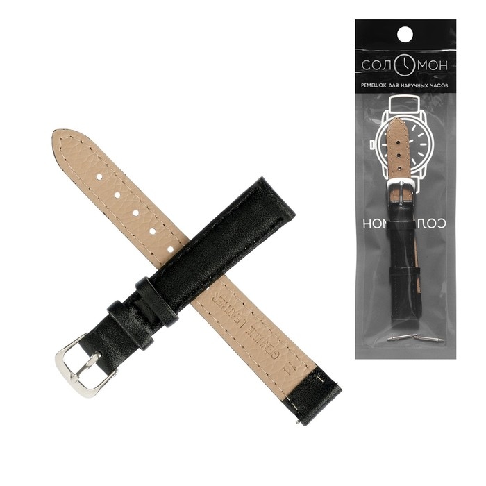 Ремешок для часов "Соломон", 14 мм, натуральная кожа, l-18 см, черный