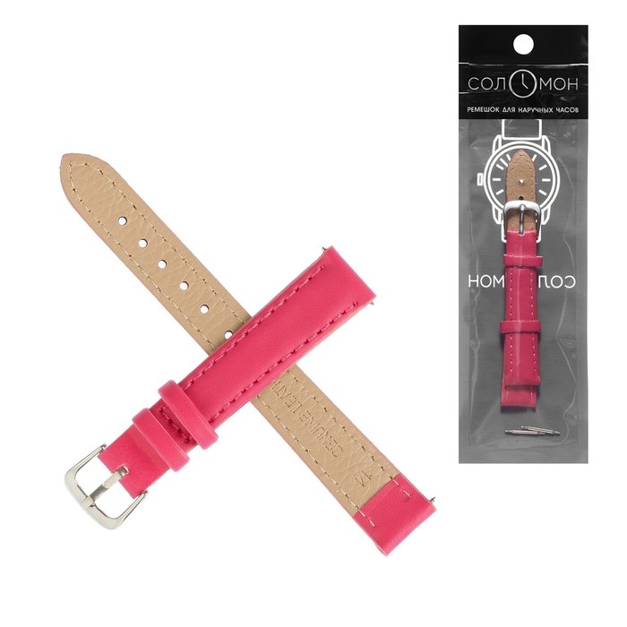 Ремешок для часов "Соломон", 14 мм, натуральная кожа, l-18 см, розовый